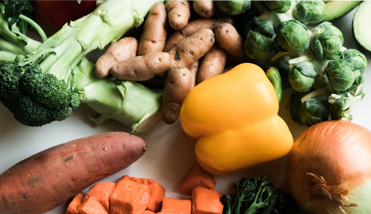 Broccoli, Pimientos rojos, ahuyama en trocitos y plátano maduro en cuadritos. Sazonar con aceite de oliva y un poquito de sal y pimienta. Dejar en el horno o en el Air Fryer de 10 a 15 mins.